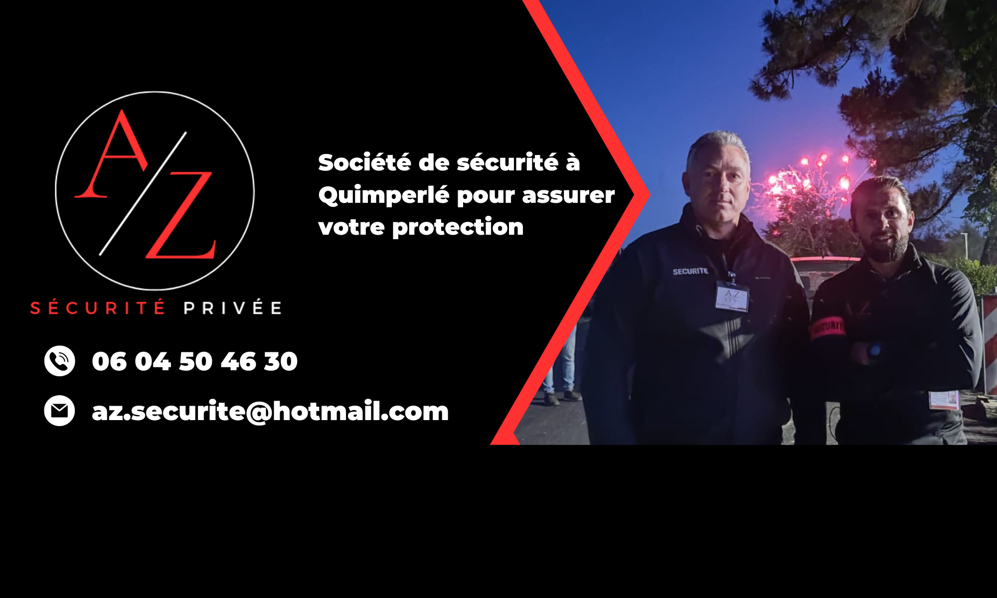 Sécurité Gardiennage Surveillance AZ SÉCURITÉ, votre sécurité privée de A à Z Demandez un devis L’équipe AZ Sécurité à Quimperlé pour assurer votre protection. Nous intervenons en Bretagne pour la sécurité, le gardiennage, le contrôle et la surveillance de vos événements, des espaces privés ou publics, etc.